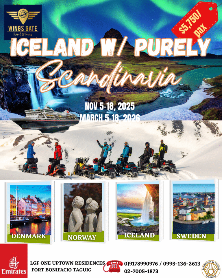 Wings Gate Travel & Tours Inc. #0917-8990976 / 63-2-7005-1873/ 0936-966-6815 or visit our office at LGF 13 One Uptown Residences Fort Bonifacio Taguig City.